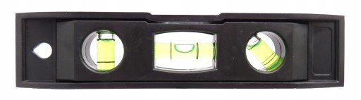 Poziomica wyposażona w 3 libelle ze szkła akrylowego, wypełnione wzmagającym widoczność, zielonym płynem.