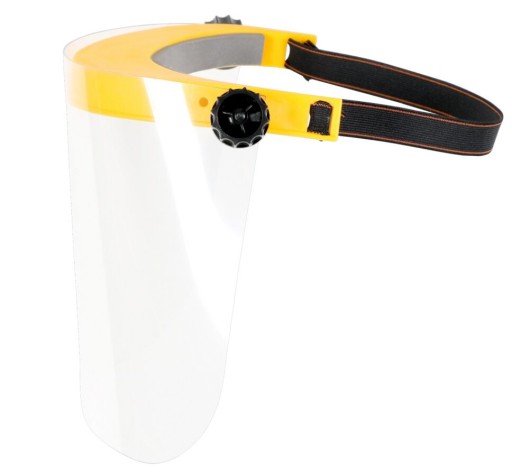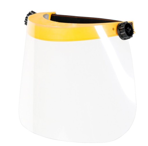 Osłona twarzy wykonana z materiału plexi. Posiada regulowany obwód. Idealnie chroni twarz przed odłamkami trawy podczas koszenia. Idealnie chroni podczas prac ogrodniczych i nie tylko.