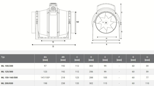 КАНАЛЬНЫЙ ВЕНТИЛЯТОР HARMANN ML 200/830.