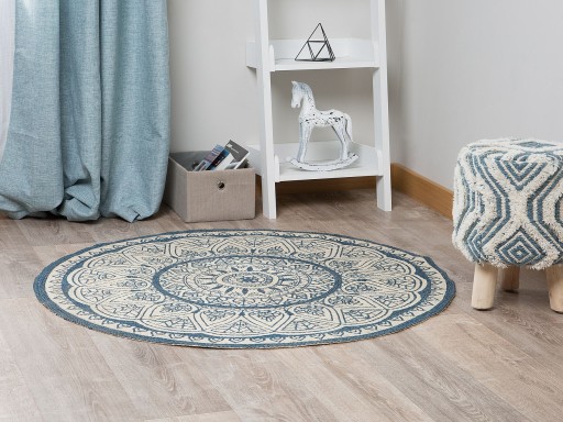 Dywan okrągły z juty ⌀ 120 cm niebieski ANADERE