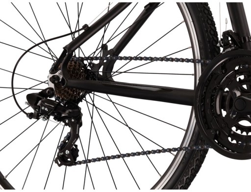 Duże koła idealnie sprawdzają się w rowerach szosowych i Cross. Dzięki swojej średnicy znacząco pochłaniają nierówności terenu. Większa średnica daje też lepszą przyczepność. Koła wykonane są z najlepszych materiałów i dzięki swojej budowie znacznie zwiększają szybkość jazdy. Duże koła 28 cali poprawiają płynność jazdy po gorszej nawierzchni i bardzo dobrze utrzymują prędkość. Komfort jazdy dodatkowo podnosi przedni amortyzator.