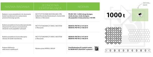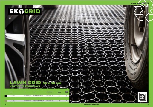 Kratka EKOGRID o wymiarach 50 x 50 cm jest bardzo wytrzymała i znosi nacisk 1000 t dzięki czemu zastępuje kostkę brukową lub betonowe płyty ażurowe.