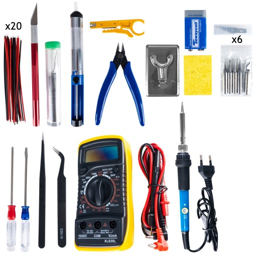 - profesjonalne narzędzia ułatwiające lutowanie - m.in. cążki, pęseta, ściągacz izolazji, odsysacz cyny - wszystko czego potrzebujesz w jednym miejscu!
