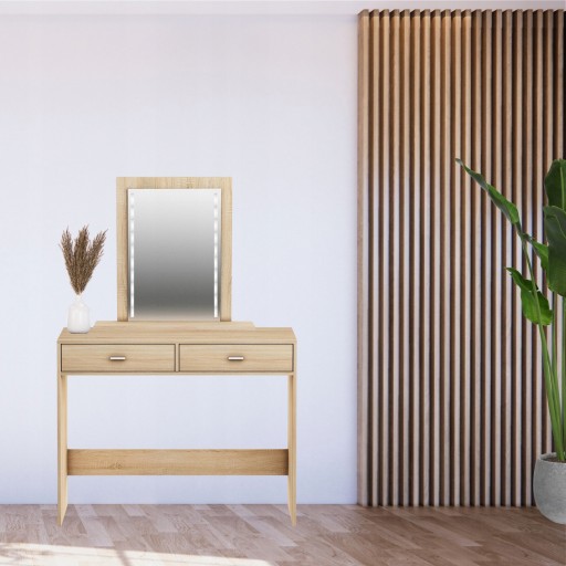 Toaletka z lustrem i oświetleniem to idealny zakup dla każdej kobiety. Pomieści kosmetyki, akcesoria do makijażu, biżuterię i inne dodatki, a duże lustro z LED-owym oświetleniem sprawi, że wykonywanie makijażu będzie o wiele łatwiejsze.