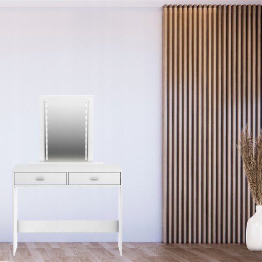 Toaletka z lustrem i oświetleniem to idealny zakup dla każdej kobiety. Pomieści kosmetyki, akcesoria do makijażu, biżuterię i inne dodatki, a duże lustro z LED-owym oświetleniem sprawi, że wykonywanie makijażu będzie o wiele łatwiejsze.