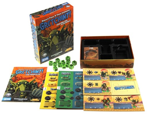 Przenieś się do świata Warhammera 40,000 i wystartuj w szalonym wyścigu.Wejdź do świata Warhammera 40,000 i wciel się w Gretchina. Zasiądź za kierownicą pojazdu zbudowanego ze wszystkiego, co akurat było pod ręką. Zaraz rozpocznie się szalony wyścig, w którym wszystkie chwyty są dozwolone!W tej szalonej grze wyścigowej jednocześnie rzucacie kostkami, aby zaplanować swój ruch. Gnaj przed siebie, dobierz karty lub otwórz ogień do przeciwników.Gra Gretchiny! wprowadza zupełnie nową mechanikę zagrywania kart - tutaj nie wiesz, co masz na ręce, podczas gdy reszta graczy może zobaczyć Twoją siłę ognia i przygotować się na atak!Odkrywaj tor, ale uważaj - każda kolejna karta terenu to niebezpieczeństwo lub okazja, aby zostawić wszystkich w tyle. Połącz strategię z odrobiną szaleństwa i bądź pierwszy na mecie!Zawartość pudełka:- 110 kart terenu i ataku,- 15 kart kraterów,- 7 paneli graczy,- 4 orcze fury - buggies,- 4 znaczniki fur,- 12 znaczników płomieni,- 12 kości,- 1 instrukcja.