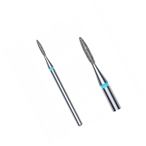 Frez w kształcie płomyka jest najbardziej uniwersalnym frezem. Używa się go do manicure i pedicure bezcążkowego, w tym w metodach „jednym frezem”.