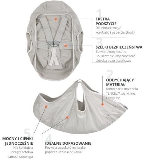 - Ekstra podszycie - dla dodatkowego komfortu i wsparcia główki