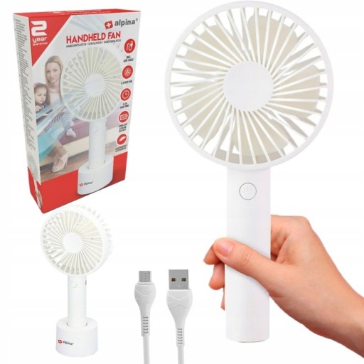 Wiatrak posiada stojak, dzięki czemu stabilnie będzie on stał na dowolnym podłożu. Można go też wyjąć ze stojaka, staje się on wówczas wentylatorem ręcznym.