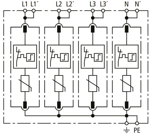 ЗАЩИТА ОТ ПЕРЕНАПРЯЖЕНИЯ DG SMP TNS 275 AC ТИПА C+D T2+T3 DEHN 942402