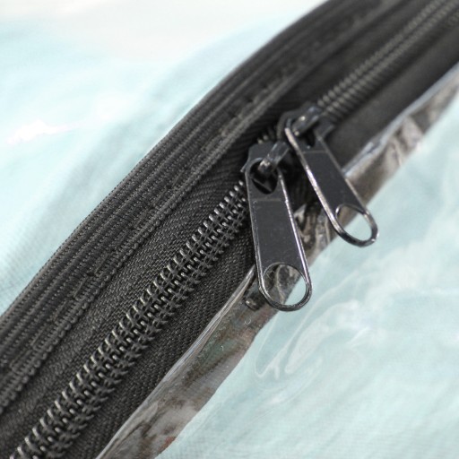 - frontowy system otwierania na całej szerokości na przy pomocy 2 zamków błyskawicznych - bardzo łatwo można dostać się do maluszka (lub wyjąć go z wózka) bez potrzeby zdejmowania folii