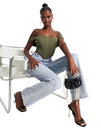 JADED ROSE GORSETOWY TOP W KOLORZE KHAKI