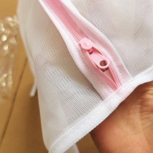 Woreczek został wyposażony w zamek błyskawiczny, aby ubrania nie wypadły z niego podczas prania.
