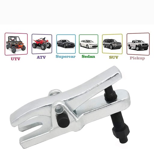 Wykonany z utwardzanej stali dzięki czemu nie musimy używać narzędzi do pobijania lub też udarowych. Ściągacz pracuje na zasadzie prasy śrubowej o drobnym gwincie. Nie uszkadza drążków i stabilizatorów.