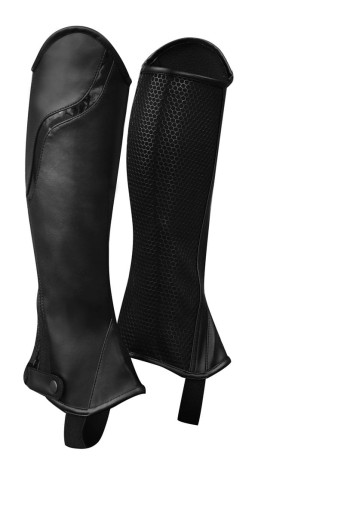 Eleganckie czapsy wykonane ze skóry syntetycznej z ozdobnym, błyszczącym paskiem na łydce. Od wewnątrz posiadają silikonowy nadruk zwiększający przyczepność podczas jazdy.