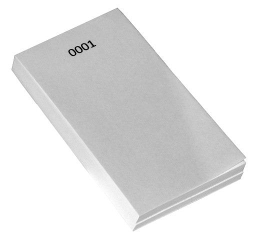 Notesik ok. 10 cm x 5 cm - kartki numerowane kolejno w bloczku od 001 do 100 - klejone od góry.