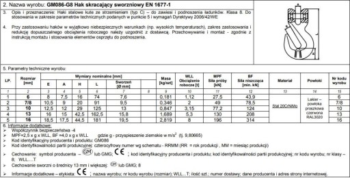 HAK SKRACAJĄCY ZE SWORZNIEM 7/8MM G8 WLL 2T