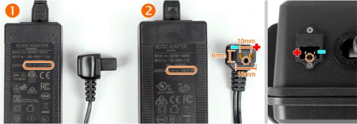 UWAGA: w trybie pracy buforowej, gdy lodówka podłączona jest do gniazda zapalniczki EKUFER, do jednoczesnego ładowania należy stosować zasilacz 6 A (np. ze standardowego wyposażenia lodówek Wertberg (typ 2 - poniżej): 87 W / 6 A - dostępny także oddzielnie lub w ramach "kup w zestawie"). W wyniku zwiększonego poboru prądu przez konfigurację w pracy buforowej zasilacze o mniejszej mocy (np. 60 W / 4 A - typ 1 poniżej) będą się nadmiernie nagrzewać.