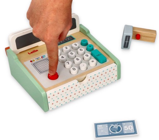 LELIN KASA FISKALNA PASTELOWA DREWNIANA + SKANER