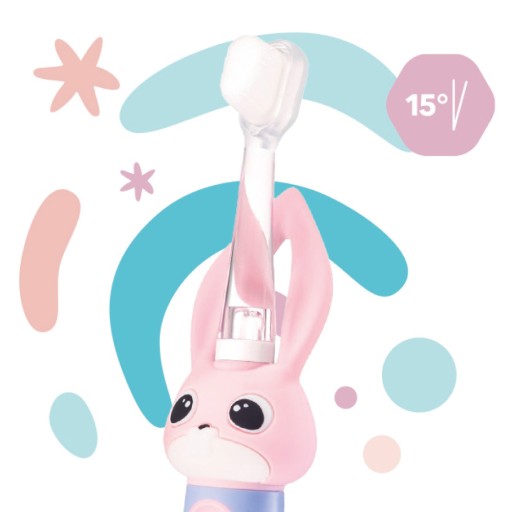 Główka Vitammy Bunny została odchylona o 15 stopni, dlatego rodzic w łatwy sposób może pomóc maluszkowi w szczotkowaniu