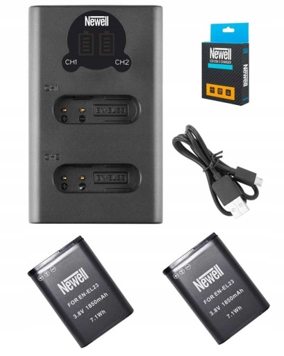Ładowarka kompatybilna jest z systemowymi akumulatorami Nikon, akumulatorami marki Newell oraz innymi zamiennikami.