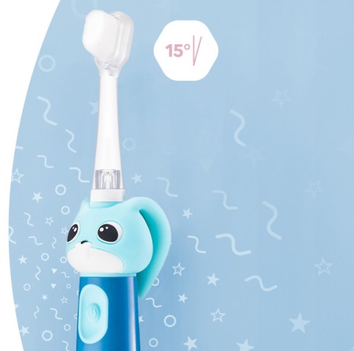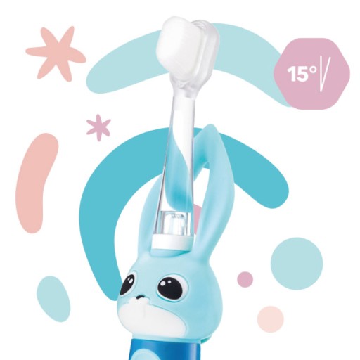 Główka Vitammy Bunny została odchylona o 15 stopni, dlatego rodzic w łatwy sposób może pomóc maluszkowi w szczotkowaniu