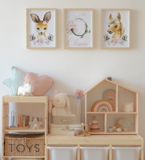 Набор из 3 постеров формата А3 Животные цветы Имя малыша