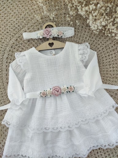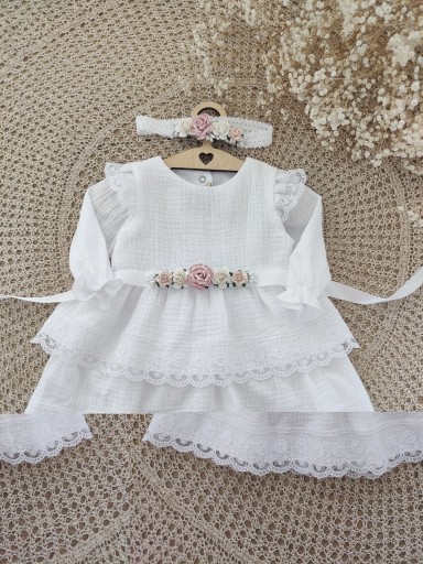 Муслиновое крестильное платье Бланка 86 БЕЛЫЙ