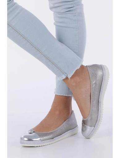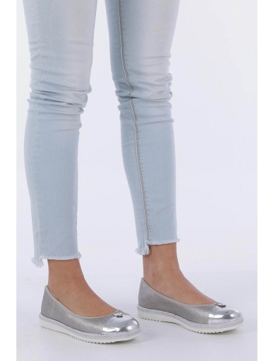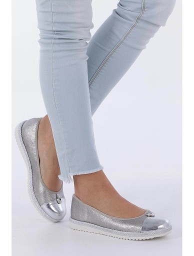 Srebrne baleriny espadryle z metalową ozdobą ze skórzaną wkładką Casu W19X2/S