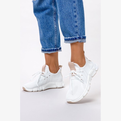 Białe sneakersy na platformie buty sportowe sznurowane Casu YF608-63