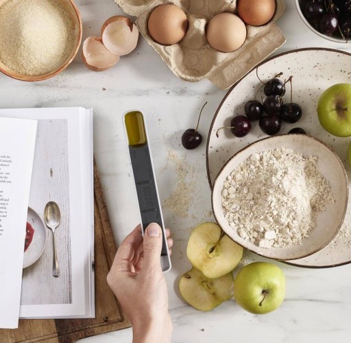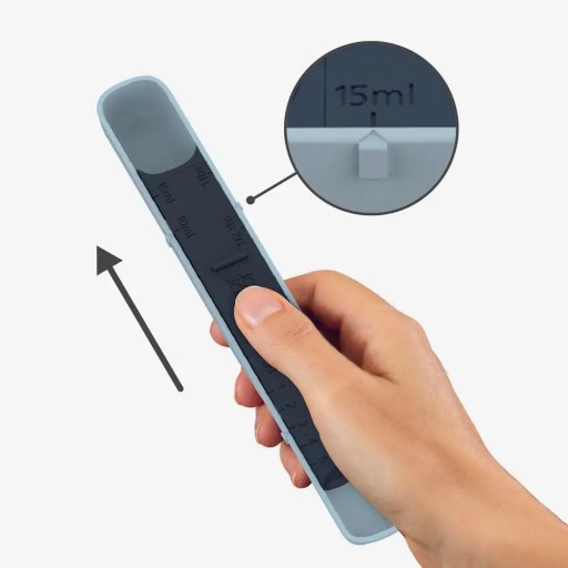 - przesuwna – odmierza składniki w mililitrach (ml), łyżeczkach do herbaty (tsp) oraz łyżkach stołowych (tbsp),