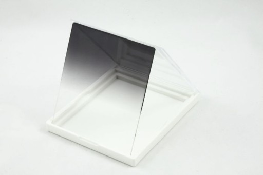 Filtr jest barwiony gradiacyjnie. Część szara filtru cechuje się współczynnikiem szarości NDx4 (dwie przysłony).