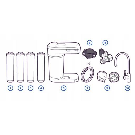 - RO-50S - membrana osmotyczna oczyszcza wodę z większości zanieczyszczeń, występujących w wodzie wodociągowej, jak również usuwa z wody bakterie, wirusy i cysty. Obniża również nadmierną twardość wody (wymiana co ok. 18-21 miesięcy - w zależności od jakości wody)