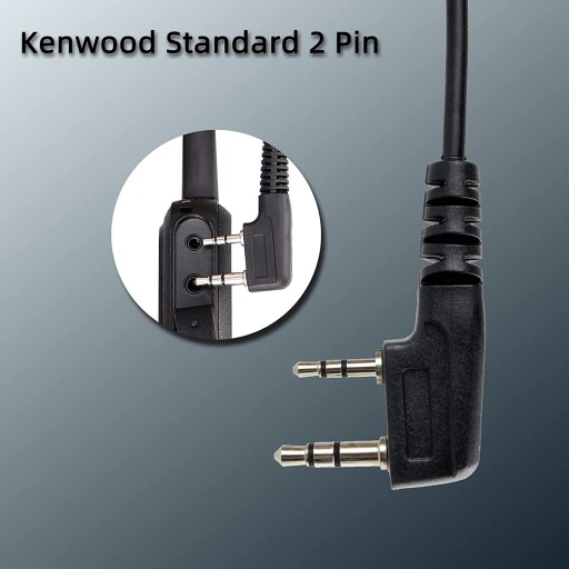 - Kenwood 2-pin; nadaje się do większości walkie talkie z tą samą wtyczką; takich jak Retevis RT24 RT27 RT617 RT618 RT619 RT622; Baofeng UV5R 888s; eSynic; HYT itp