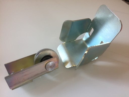 This is our production inrun roller, in which the roller is mounted on a pin fastened with a Seger ring, not crimped.