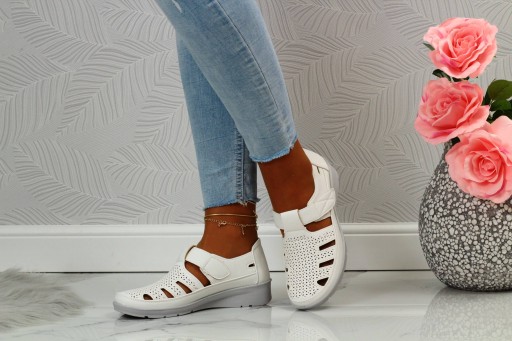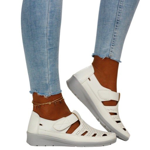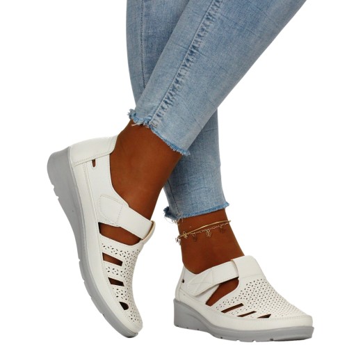 PÓŁBUTY DAMSKIE WIOSENNE RZEP AŻUROWE SKÓRA NISKIE Kod producenta 22T421 WHITE