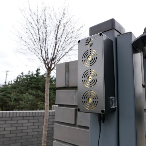W urządzeniu zainstalowano aż cztery głośniki piezoelektryczne – trzy średnicy 50mm i jeden 35mm oraz cztery diody wysokiej jasności. Całość uzupełnia hermetyczna obudowa w klasie szczelności IP65 co umożliwia wykorzystywanie odstraszacza zarówno w pomieszczeniach, jak i na zewnątrz. Polskie urządzenie skonstruowane zostało do warunków klimatycznych panujących w naszym kraju – jest odporne na promienie słoneczne, deszcz, mróz i wiatr.
