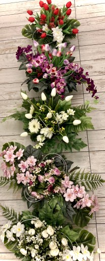Stroik wykonany jest z dobrej jakości kwiatów sztucznych i dodatków, które będą świeżo zakupione na kwiatowej giełdzie. Nie wykonuję stroików na zapas, lecz w momencie złożenia zamówienia, co eliminuje do zera problem niszczenia towaru. Klient dzięki temu otrzymuje zupełnie nowy, starannie dopracowany, niezakurzony i w wyrazistych barwach produkt, a także może mieć wpływ na ostateczny wygląd stroika - wystarczy poinformować sprzedawcę o specjalnych potrzebach.
