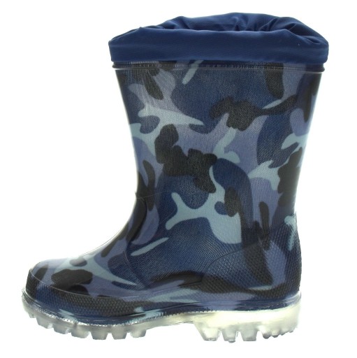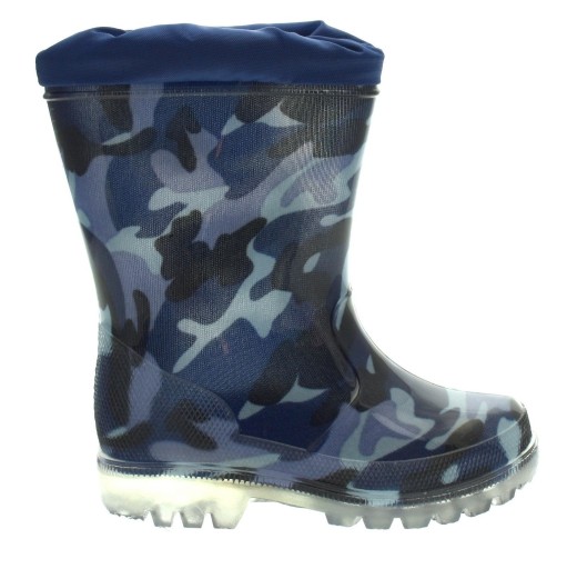 Kalosze chłopięce z zakończoną ściągaczem cholewką. Idealne dla fanów militariów.