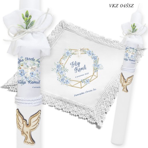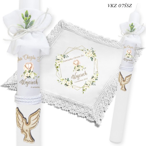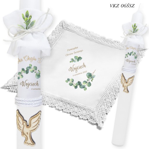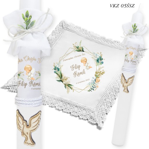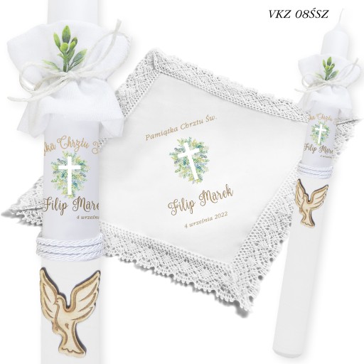 Gustowny stylowy ZESTAW świecę + szatką dla osób ceniących sobie prostotę, elegancję i piękno z zachowaniem powagi najważniejszego Święta młodego chrześcijanina.