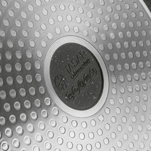 Pozostałe informacje: - patelnia aluminiowa odlewana, - pokryta powłoką non stick Marble, - PFOA free, - uchwyt bakelitowy z otworem do zawieszenia, - wysokość rantu patelni: 1,5 cm, - średnica pojedynczego otworu: 8 cm, wysokość rantu: 0,5 cm