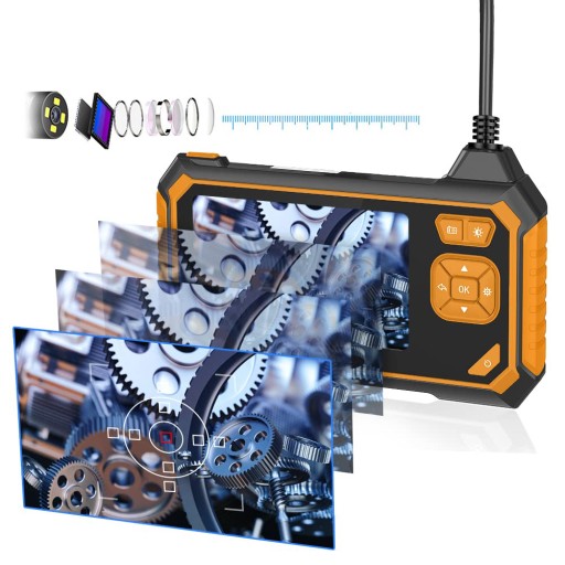 Kamera endoskopowa najnowszej generacji posiada własny ekran, który wyświetla obraz z kamery w jakości Full HD 2 miliony pikseli. Nie wymaga specjalnych aplikacji, jest gotowa do działania od razu po włączeniu, co pozwala zaoszczędzić czas i nerwy w pracy. Przewód kamery jest bardzo elastyczny i wytrzymały, ma aż 5 metrów długości, co umożliwia filmowanie i podgląd na żywo w trudno dostępnych miejscach. Kamera posiada 6 wbudowanych diod LED oraz panel regulacji jasności oświetlenia, który pozwala na dostosowanie oświetlenia do panujących warunków. W zestawie znajduje się aż 4 wymienne końcówki, w tym końcówka klasyczna, hak, magnes i lusterko, dzięki którym w łatwy sposób można dotrzeć do nawet bardzo trudno dostępnych miejsc i zobaczyć, co jest przyczyną usterki.