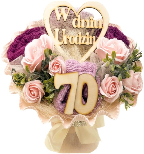 Nie szukaj dalej! Nasz bukiet z ręczników oferuje idealne połączenie elegancji i funkcji. Zamiast kwiatów, które zwiędną podaruj bukiet z dwóch wysokiej jakości ręczników, pięknie ozdobiony mydlanymi kwiatami i drewnianym serduszkiem.