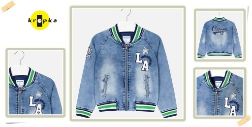 Uszyta z bardzo miękkiego , miłego w dotyku przecieranego jeansu. Zapięcie z przodu na zamek. kolorowe ściągacze przy szyi i rękawach Jeansowa tkanina z efektem sprania, doskonała do codziennych stylizacji. Kurka cała na cieniutkiej bawełnianej podszewce . 2 kieszenie po okach . Ozdoby: hafty i efektowne naszywki.
