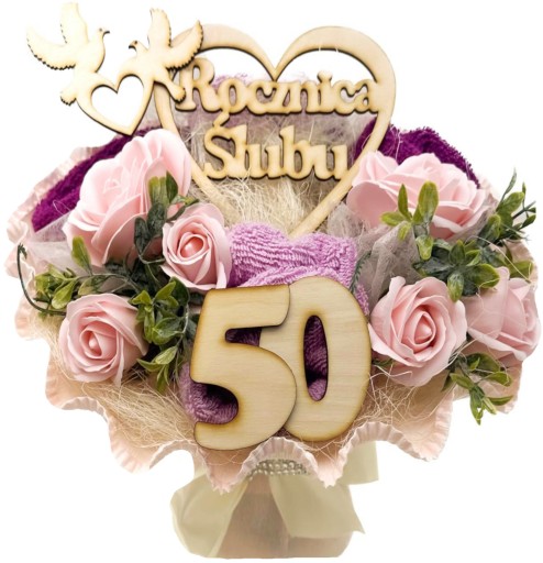 Nie szukaj dalej! Nasz bukiet z ręczników oferuje idealne połączenie elegancji i funkcji. Zamiast kwiatów, które zwiędną podaruj bukiet z dwóch wysokiej jakości ręczników, pięknie ozdobiony mydlanymi kwiatami i drewnianym serduszkiem.