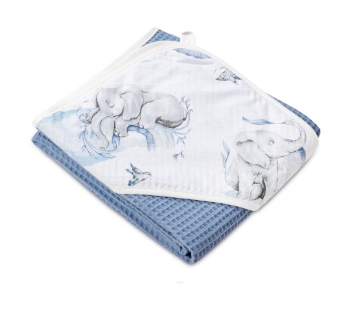 Posiadany kapturek i miękka naturalna tkanina o wyjątkowej strukturze wafla zamieni zwykły ręcznik również w praktyczny otulacz, kocyk czy matę do zabawy.