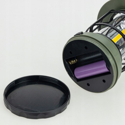 Wyposażona w nowoczesne i oszczędne diody COB, które pozwalają uzyskać wysoki strumień świetlny przy niewielkim poborze energii. Lampa osiąga jasność do 250 lumenów, dzięki czemu doskonale oświetla każdą przestrzeń. Dwa stopnie natężenia światła – 30% lub 100% mocy, pozwalają na odpowiednią regulację jasności i wydłużenie działania lampy. Latarnia wyposażona w trzy paski COB, każdy po 10 diod LED. Diody rozłożone równomiernie dookoła, oświetlają przestrzeń w obrębie 360°. Latarnia uruchamiana wodoodpornym przyciskiem. Posiada stabilną podstawkę oraz hak do zawieszania lub przenoszenia. Jest energooszczędna, zasilana dwoma akumulatorami 18650 z możliwością ładowania.