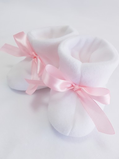 Ozdobna kokardka wciągnięta w środek, sprawia iż bucik dobrze trzyma się na nóżce .