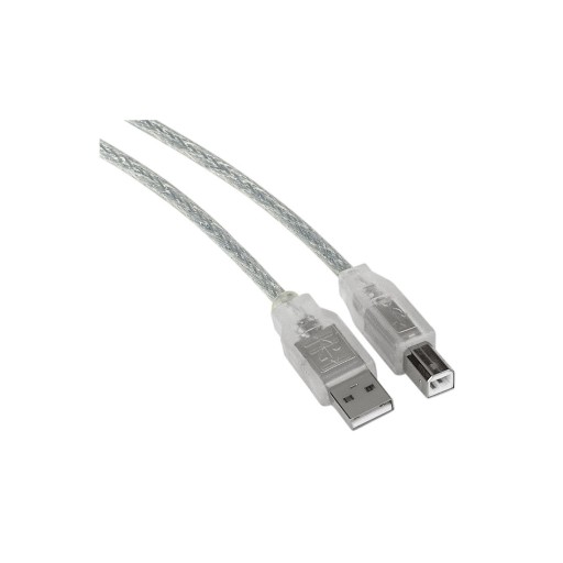 Kabel USB A – USB B o długości 3 metrów, ekranowany, owalny, certyfikowany, w kolorze bezbarwnym przezroczystym.