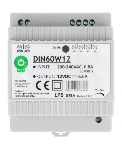 Zasilacz na szynę DIN 60W 12V 5A